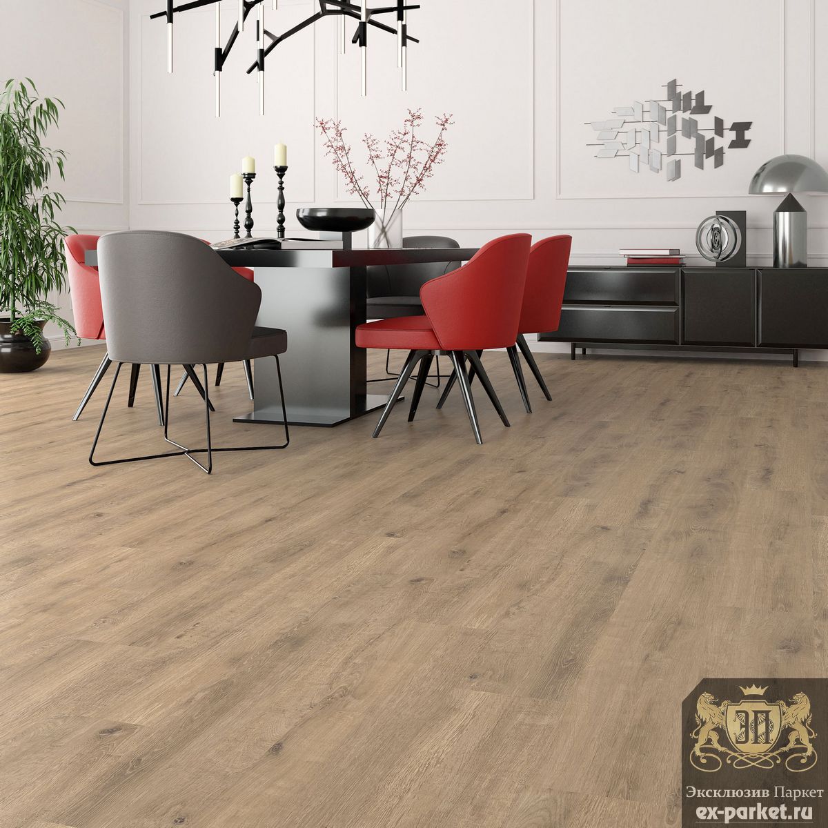 Характеристики: Размер: 1380х190х12мм; Класс: 33; Упаковка: 1,58м² / 6шт / 17кг; Фаска: 4V; Замок: Vӓlinge Click; Поверхность: тиснение в регистр.