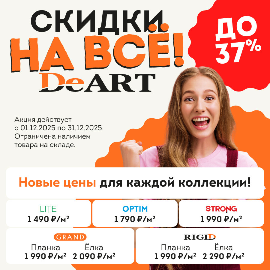 👉 Успей купить выгодно кварцвиниловую плитку DeART Floor уже сегодня.