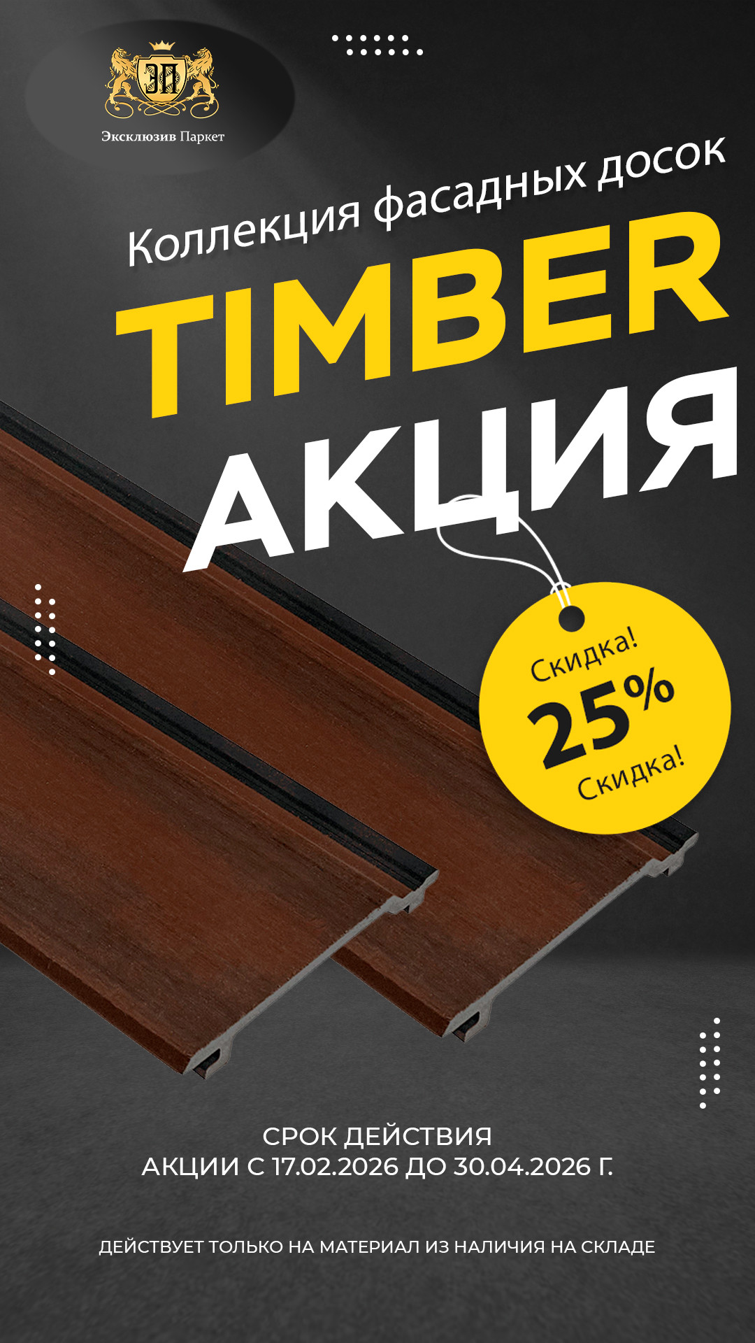 * Акция действует только на материал из наличия на складе. Срок действия акции до 30.04.2026 г. (или до окончания складских запасов).