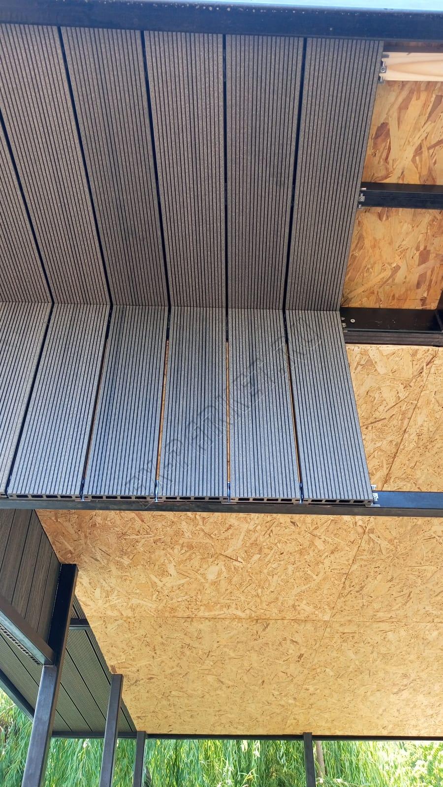 🔨 Монтаж произведён стороной вельвет на металлический каркас. Рабочая поверхность декинга не скользит и в дальнейшем легко поддаётся реставрации от царапин и выбоин.