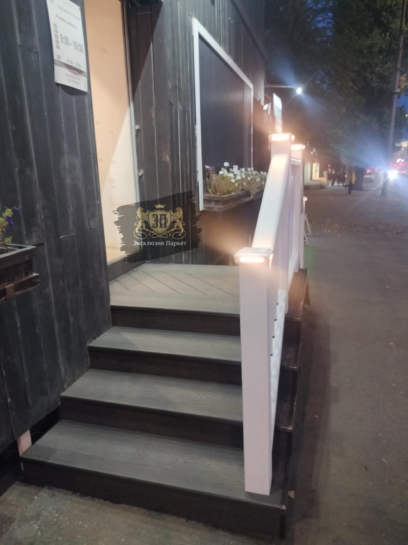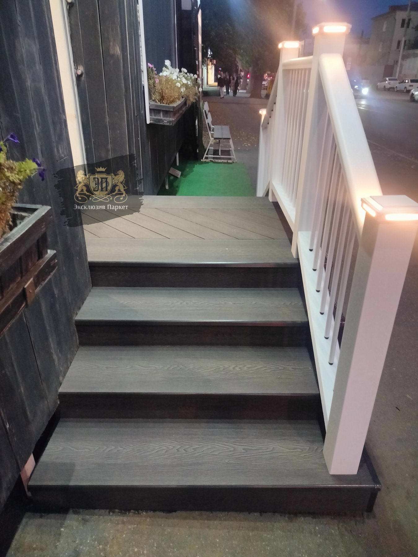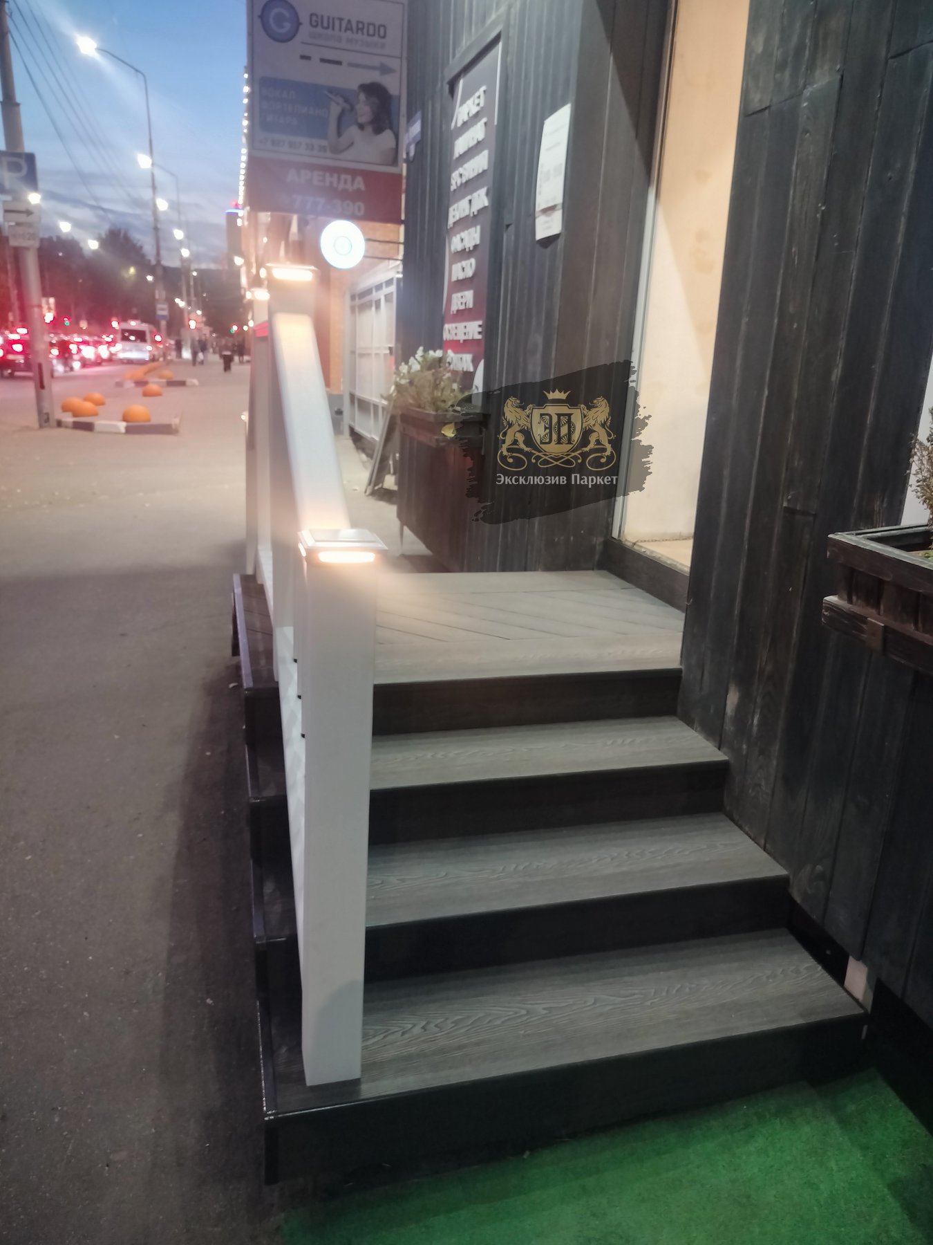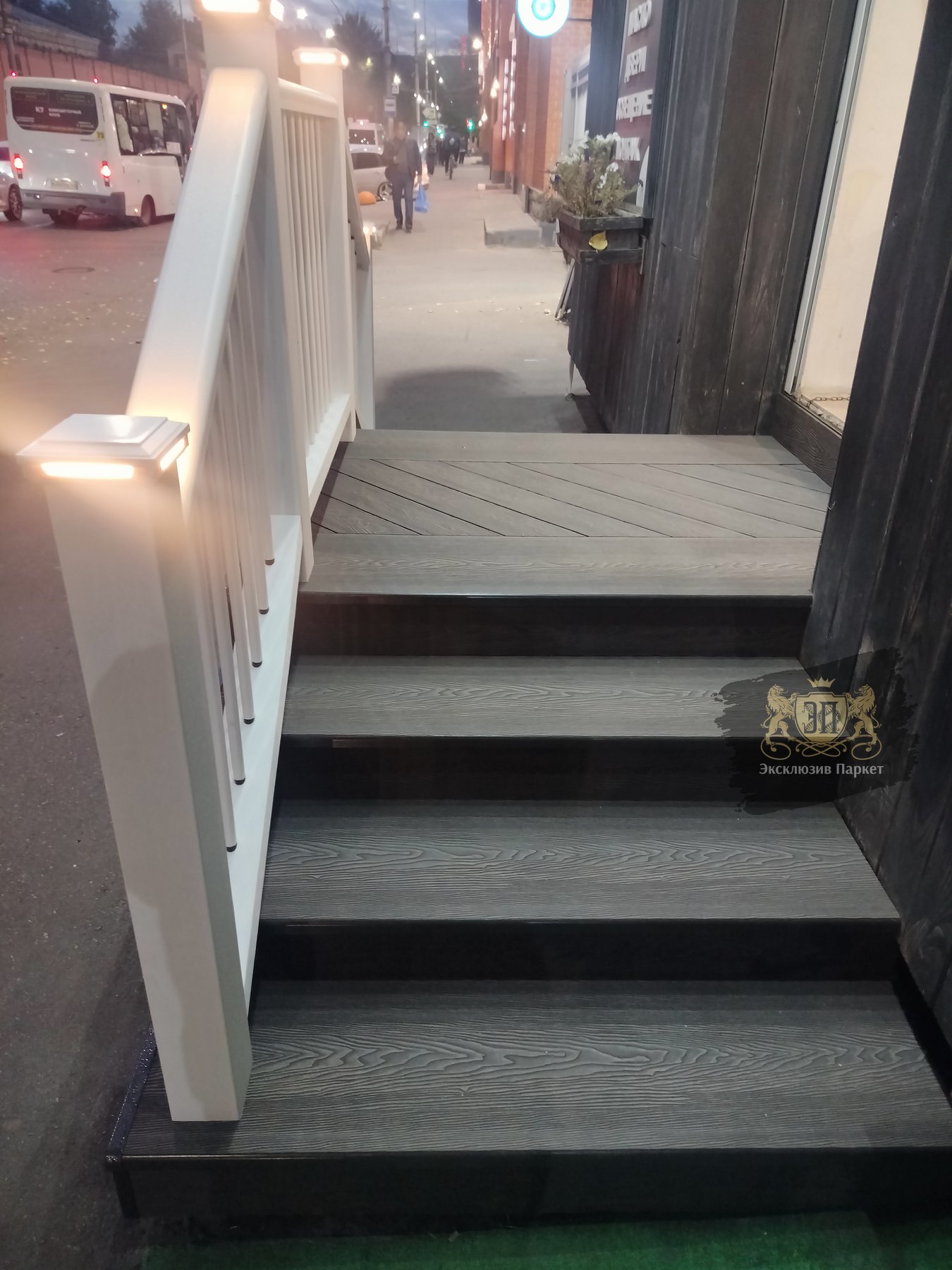Новая лестница из ДПК Good Cover 3D и элегантными ограждениями Woodvex