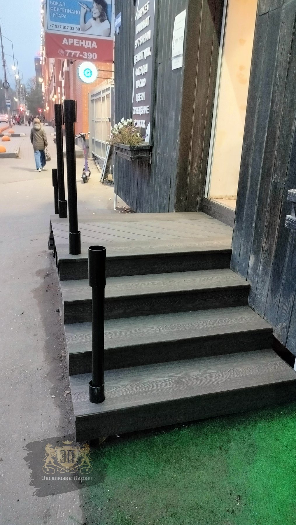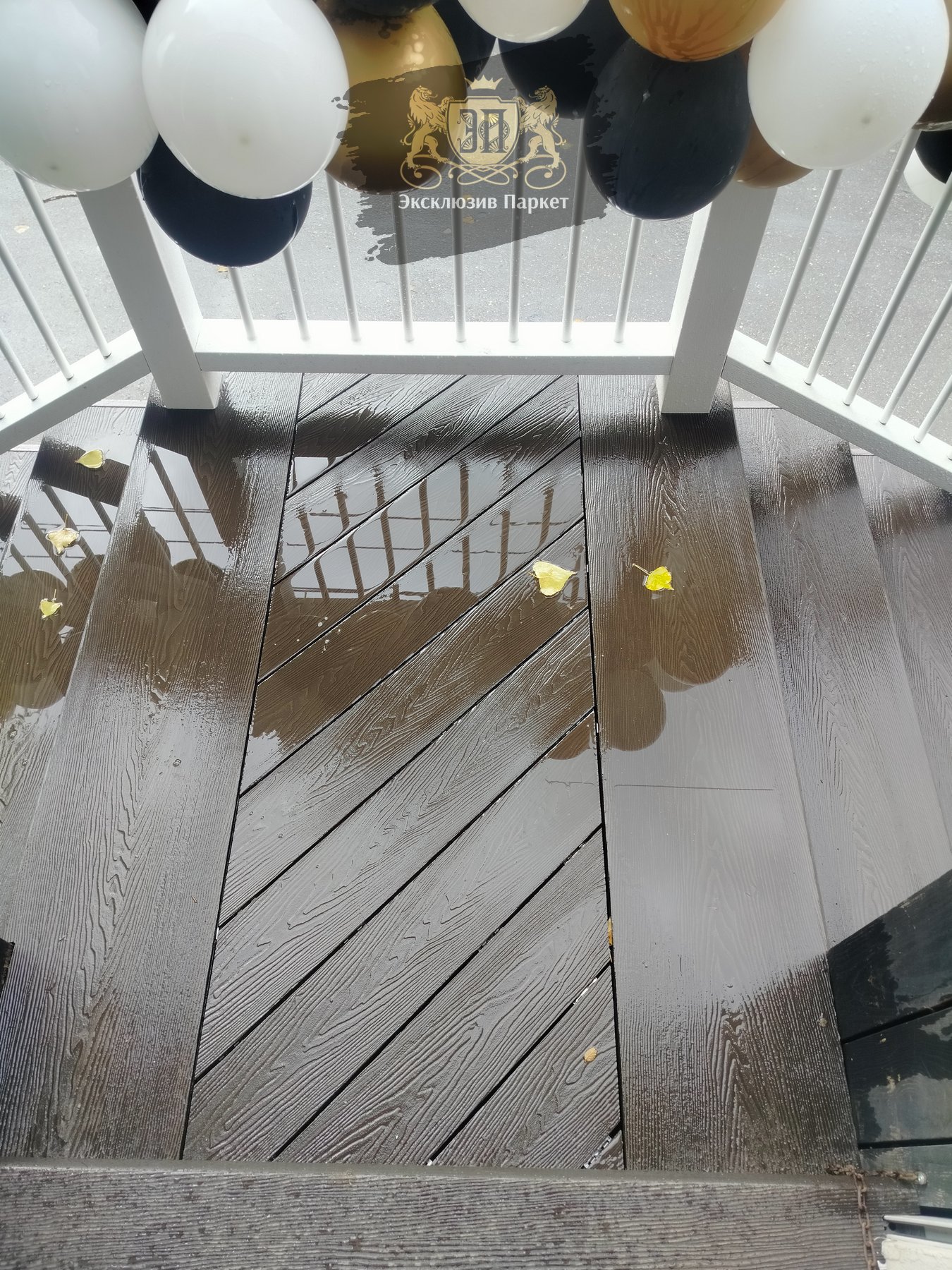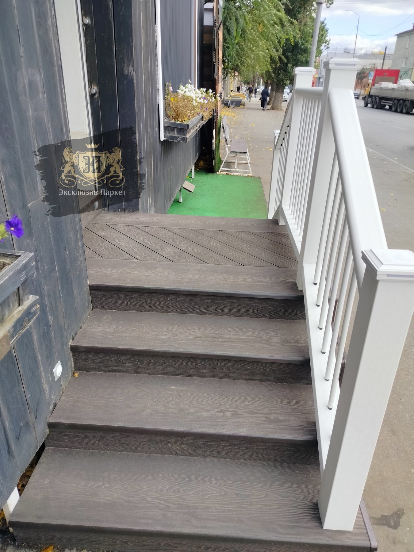 Новая лестница из ДПК Good Cover 3D и элегантными ограждениями Woodvex