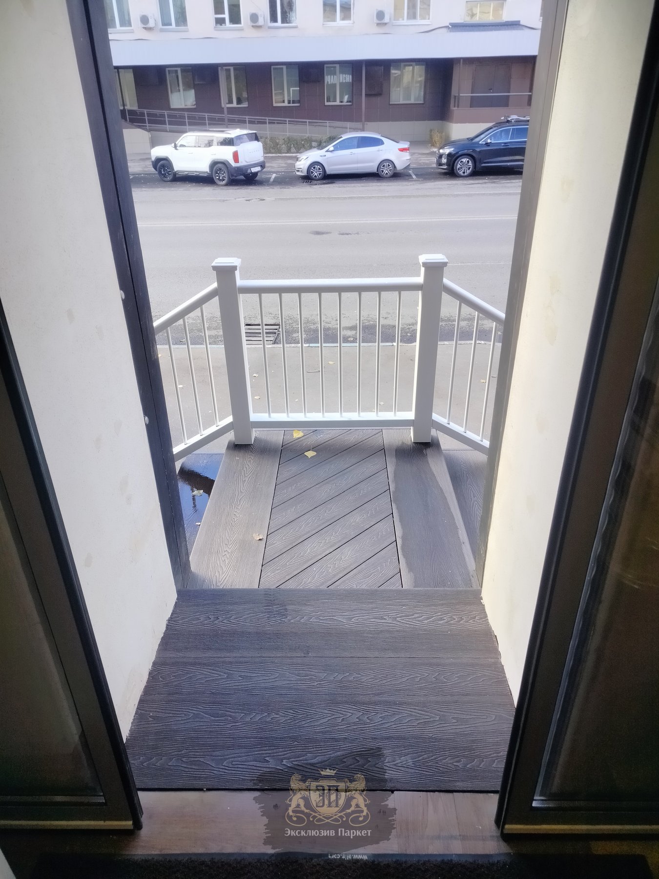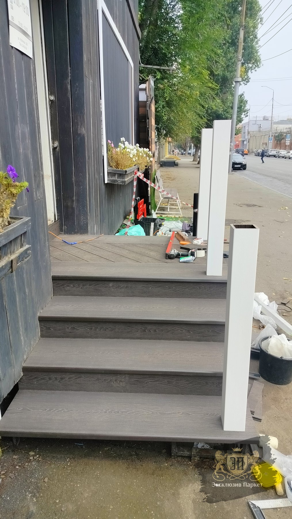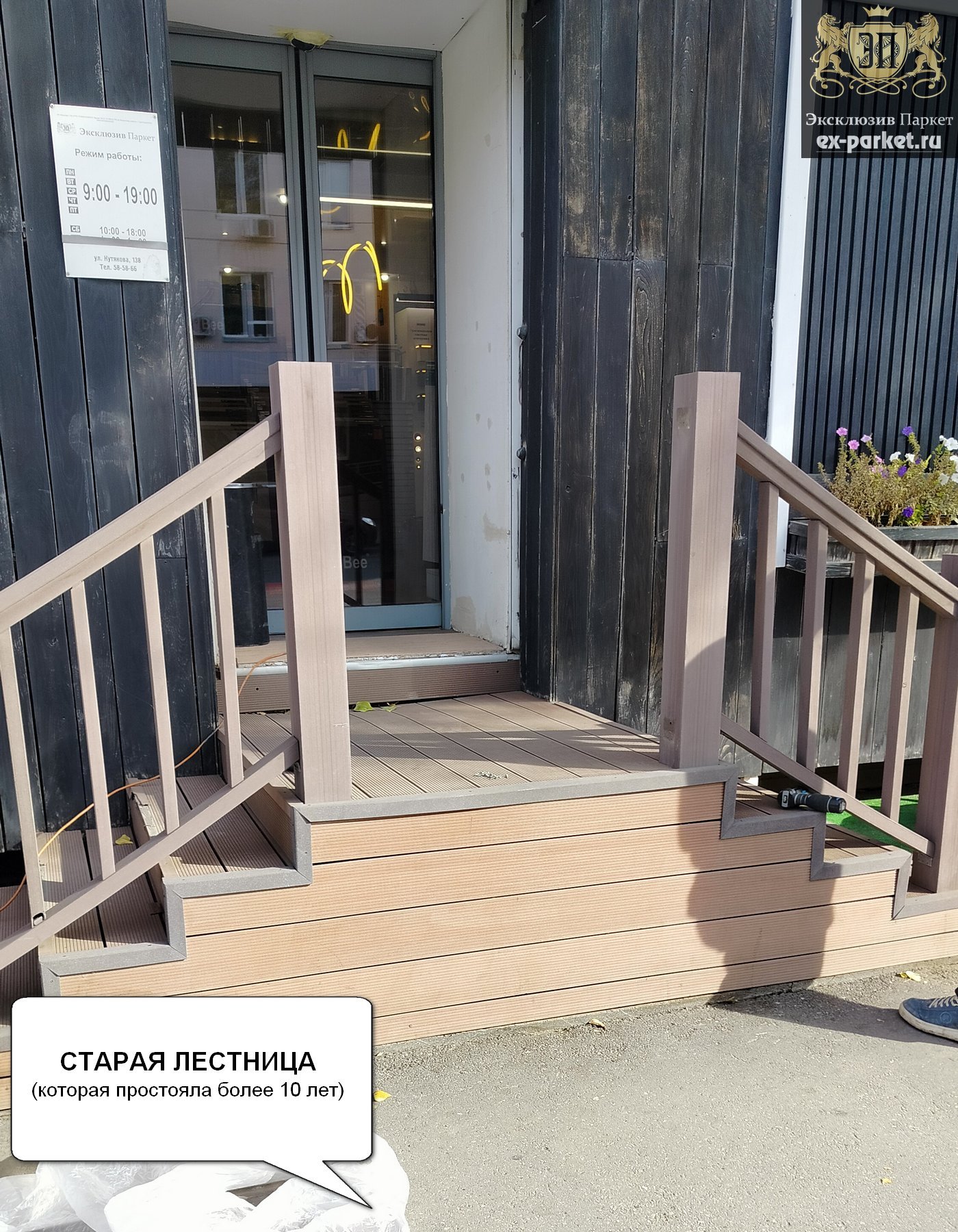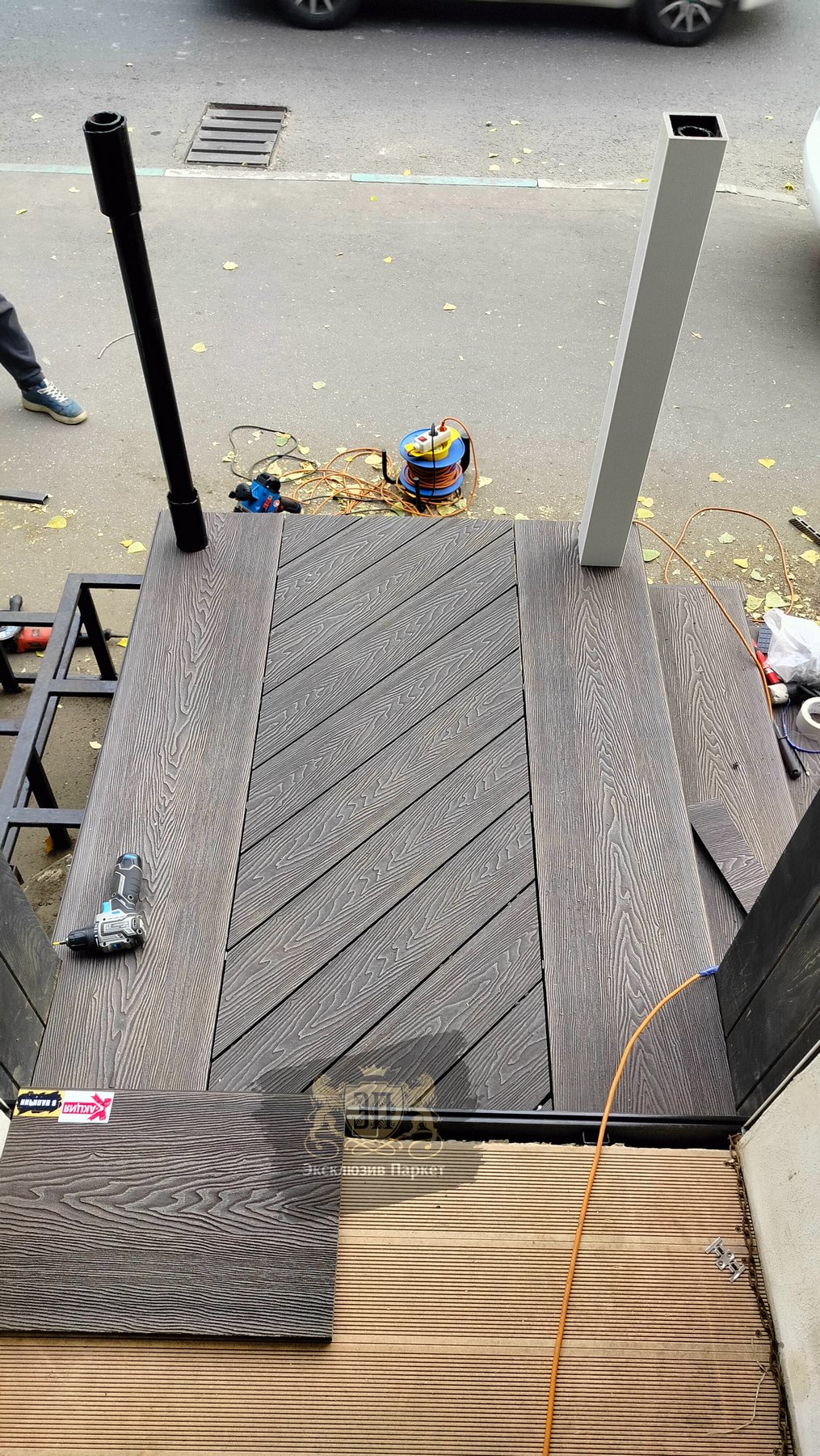 Новая лестница из ДПК Good Cover 3D и элегантными ограждениями Woodvex