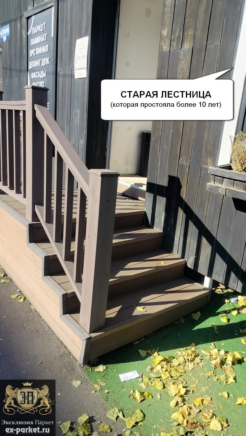 👋 Время не стоит на месте, и даже надёжные решения нуждаются в обновлении. Прошло десять лет, и мы демонтировали старую лестницу из стандартного профиля Good Cover (коричневый), чтобы заменить её на современную и стильную конструкцию из ДПК Good Cover 3D в глубоком цвете "венге".