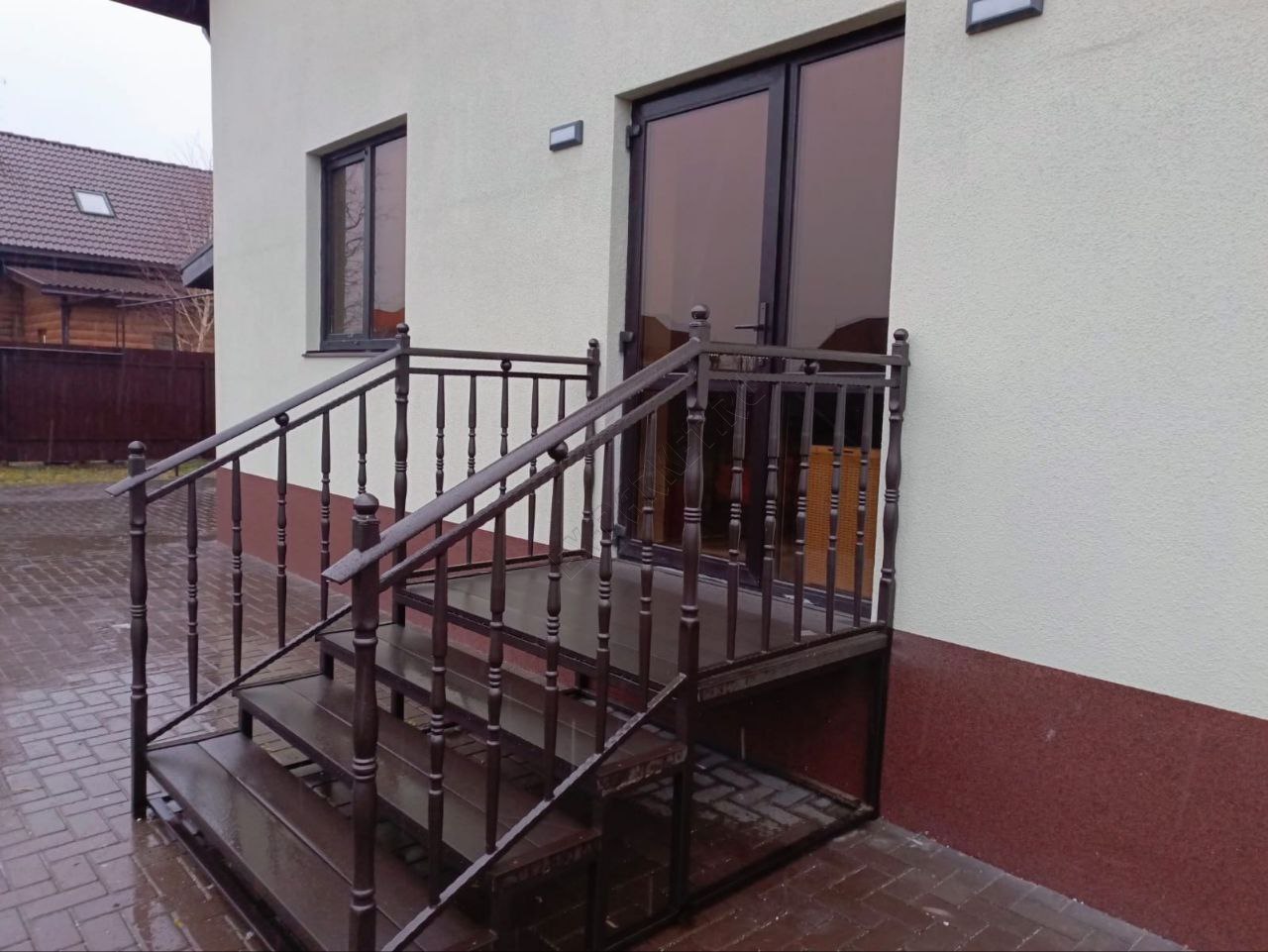 Монтаж крыльца на металлическую лестницу в частном доме из террасной доски ДПК SaveWood Salix